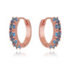 Este brinco de argola é confeccionado em PRATA 925 com banho de ouro 18k. O diâmetro da argola é de 1,5 cm. Cravejada por cristais de cor turmalina (não é pedra natural). O fecho é de click. Um brinco super leve e delicado.