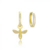 O brinco é cravejado em zirconias brancas. O brinco é feito em prata 925 com banho de ródio. Fecho de tarraxa. Altura de 1 cm e largura de 1,1 cm aproximadamente. Uma linda peça para ser usada tambem como brinco de segundo furo.