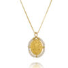O colar é cravejado em zirconias coloridas. O colar é feito em prata 925 com banho de ródio e também canetado em ródio negro na parte das zirconias, para que as mesmas sejam realçadas. Diâmetro do pingente: 2,9 cm. A corrente possui 38 cm + 5 cm extensor.