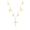 O colar é feito em metal com banho de ouro rose. A corrente possui corrente de comprimento de 38 cm + 5,5 cm extensores. Pingente maior do Espirito Santo possui 1,8 cm de largura por 1,0 cm de altura.